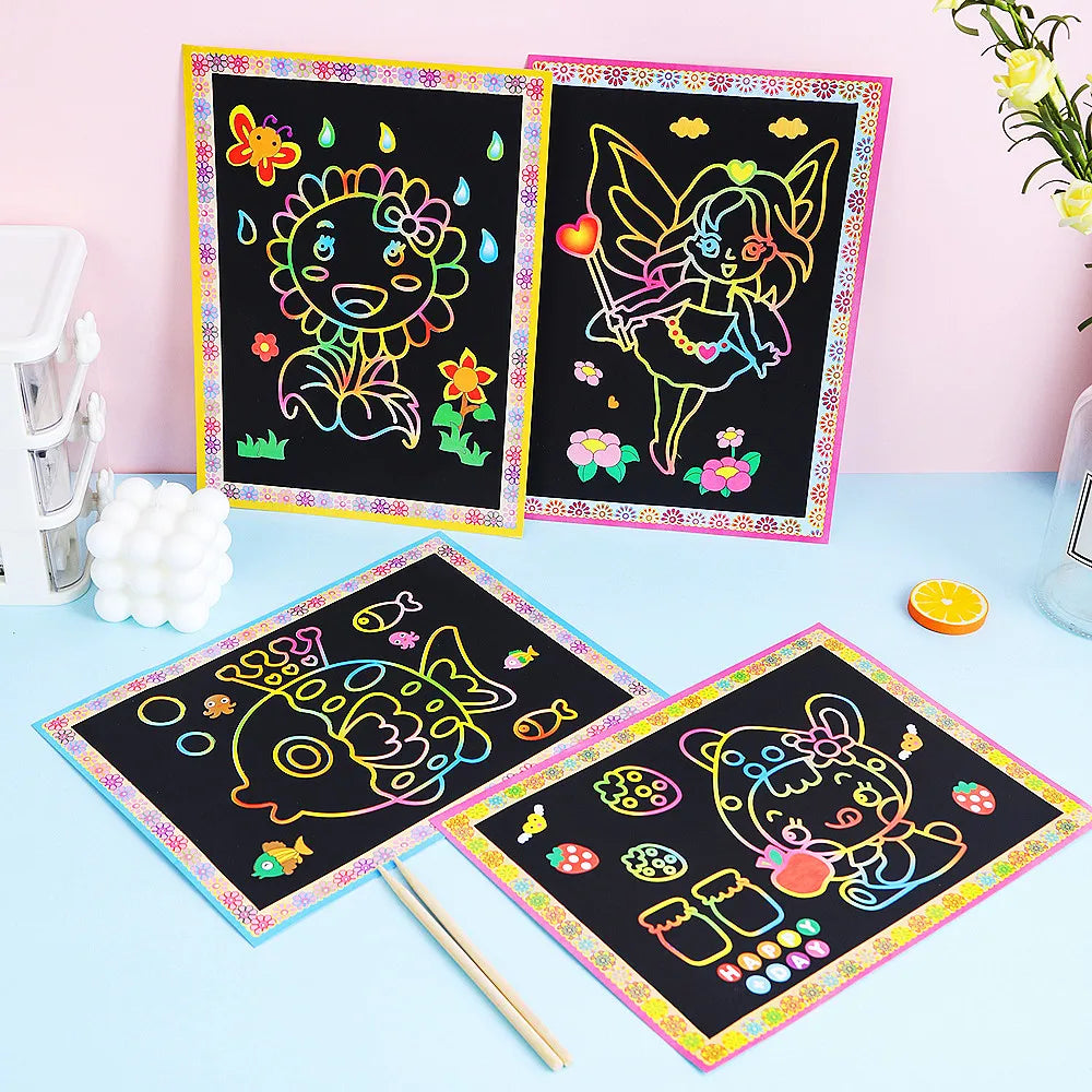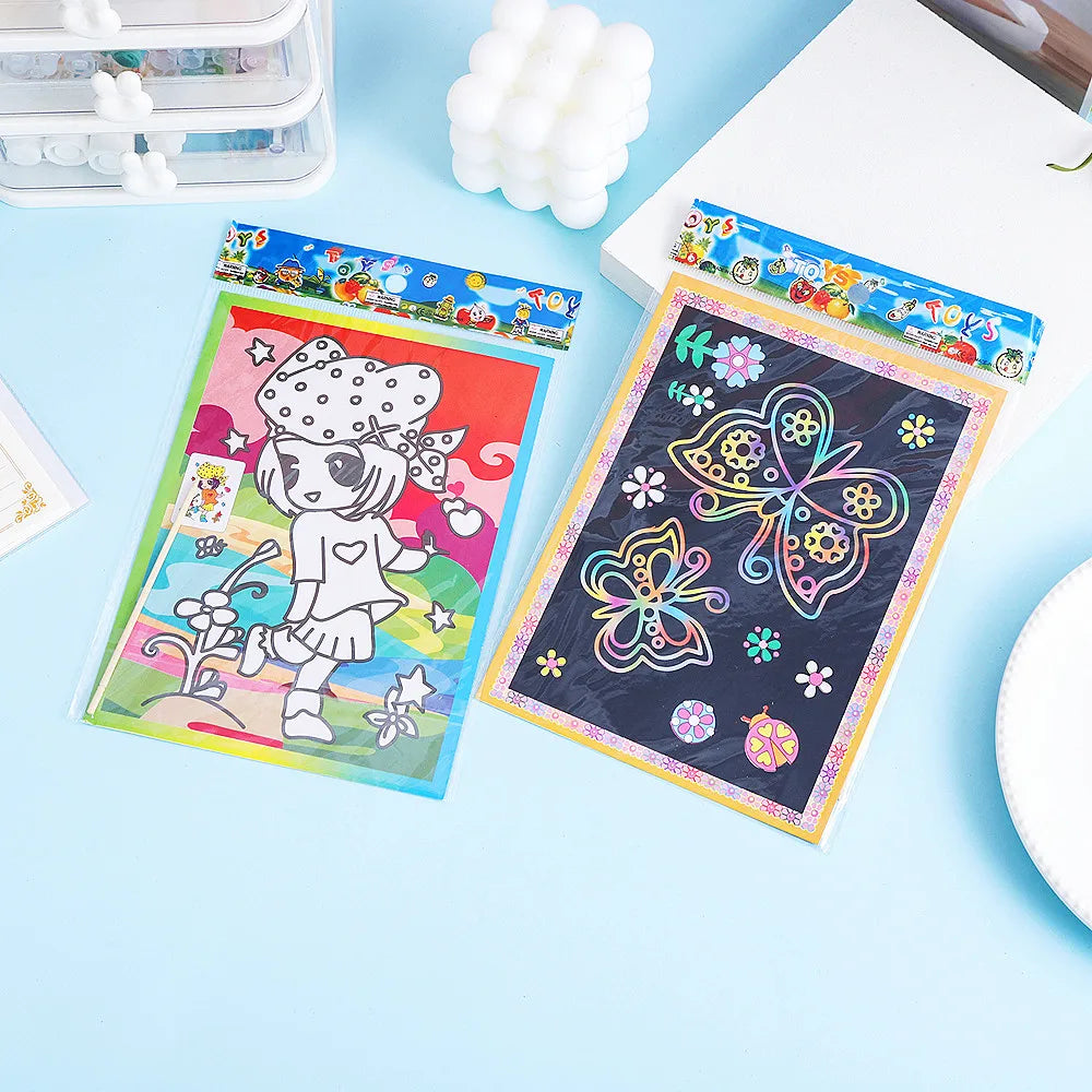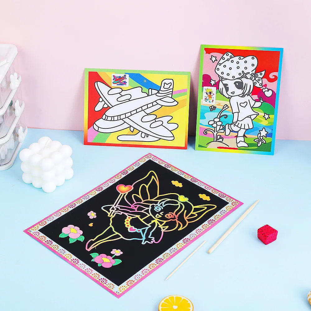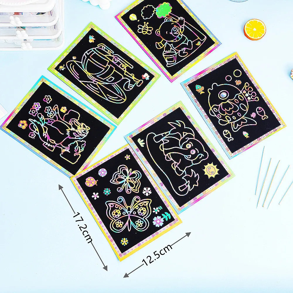 12/24 Pieces Creative Colorful Kids Scratch-Off DIY Painting Set Student Stationery Prizes Birthday Party Favor Bags