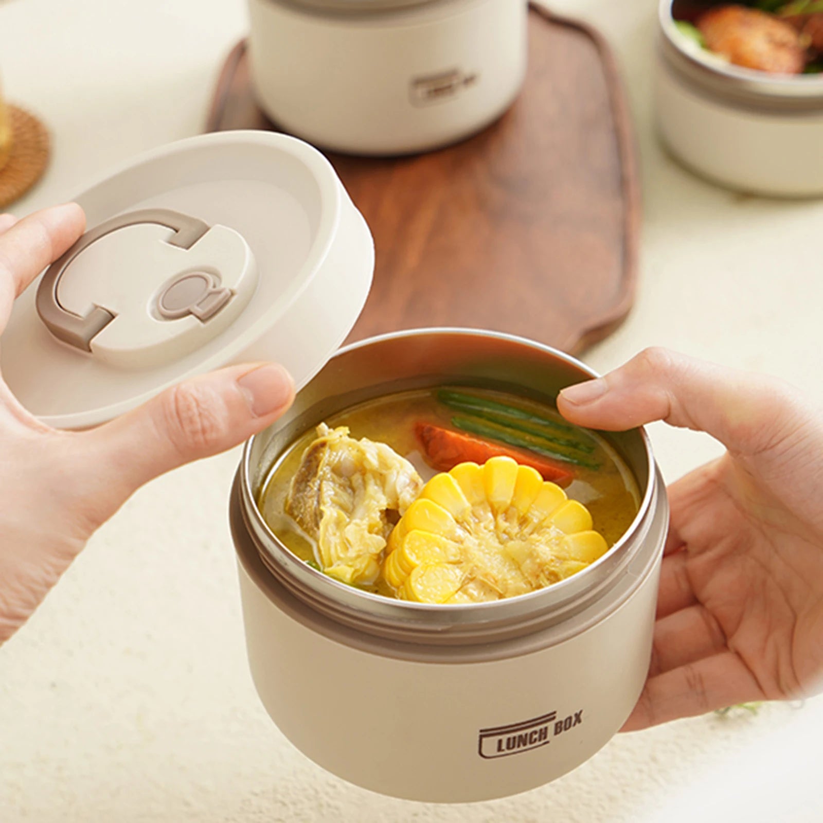 【 PREMIUM MATERIAL 】 Insulated lunch box Made of high quality 304 stainless steel(internal) and PP(external), hidden handle, sealed silicone ring, sealed breathable valve design, this set of food containers are sturdy and durable. keep your food fresh for a long time.