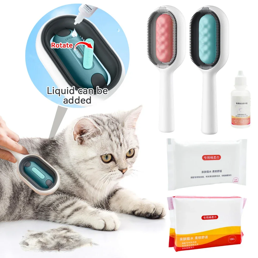 Cat Brush Long Hair Remover Brush for Dog Cat Silicone Pet Grooming Comb with Wipe and Water Tank Pet Product Accessories