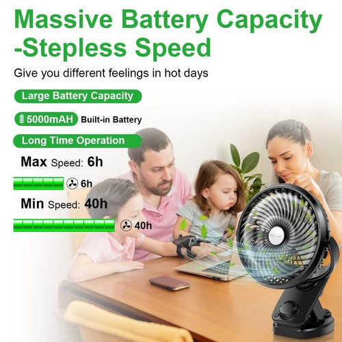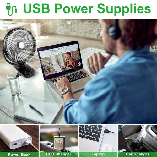 6-40 Hours Super Long Endurance: Built-in rechargeable 5000mAh battery, 6-40 hours working time depend on different speed; 12V USB Fan charging by a computer, laptop , power bank, USB Charger, cellphone adapter, car charger etc