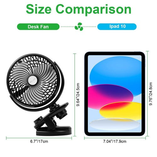 2 in 1 Clip On Fan and Table Fan: Stand & Clip 2-in-1 design, light weight and portable size (9.64 x 6.7 x 3.74 inches) make it suitable for use in different occasions, such as: stroller, car, bedroom, office, camping, traveling, etc. Also an idea gift for friends, colleagues and family