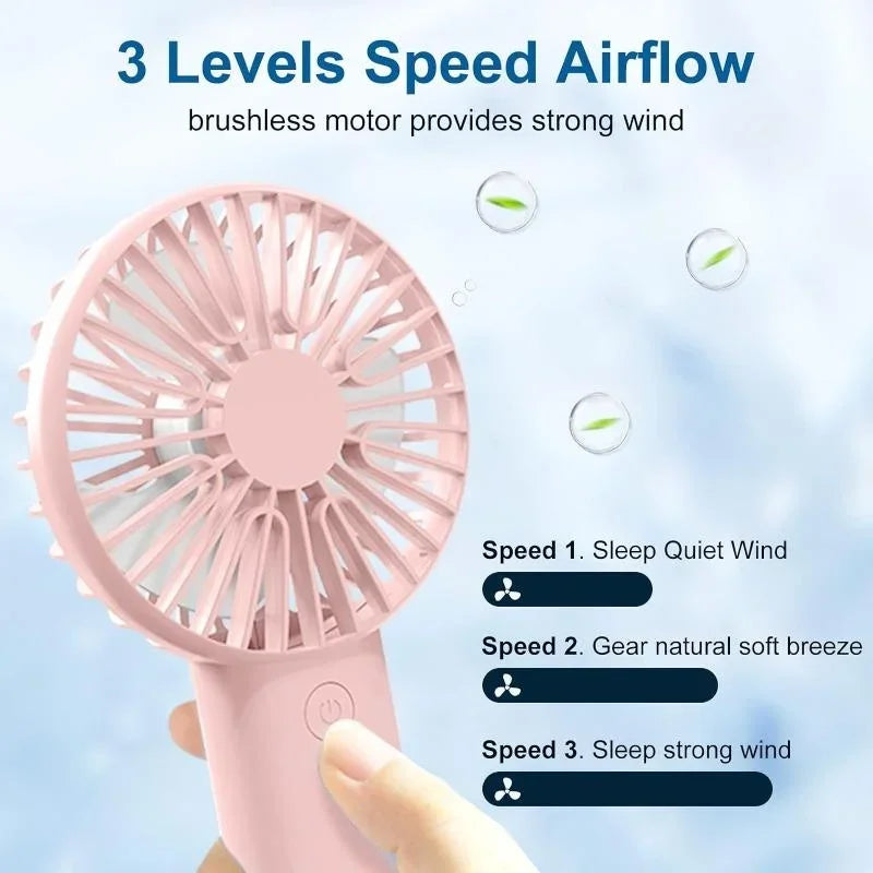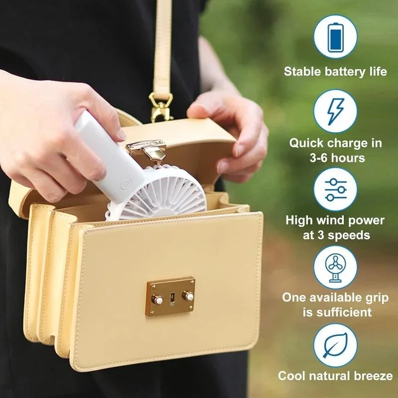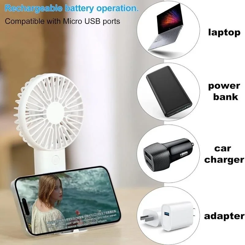 Work While charging: Get power supply from USB devices such as computers, laptops and chargers, USB chargers. Handheld portable fan can continue to work when connecting the power supply.