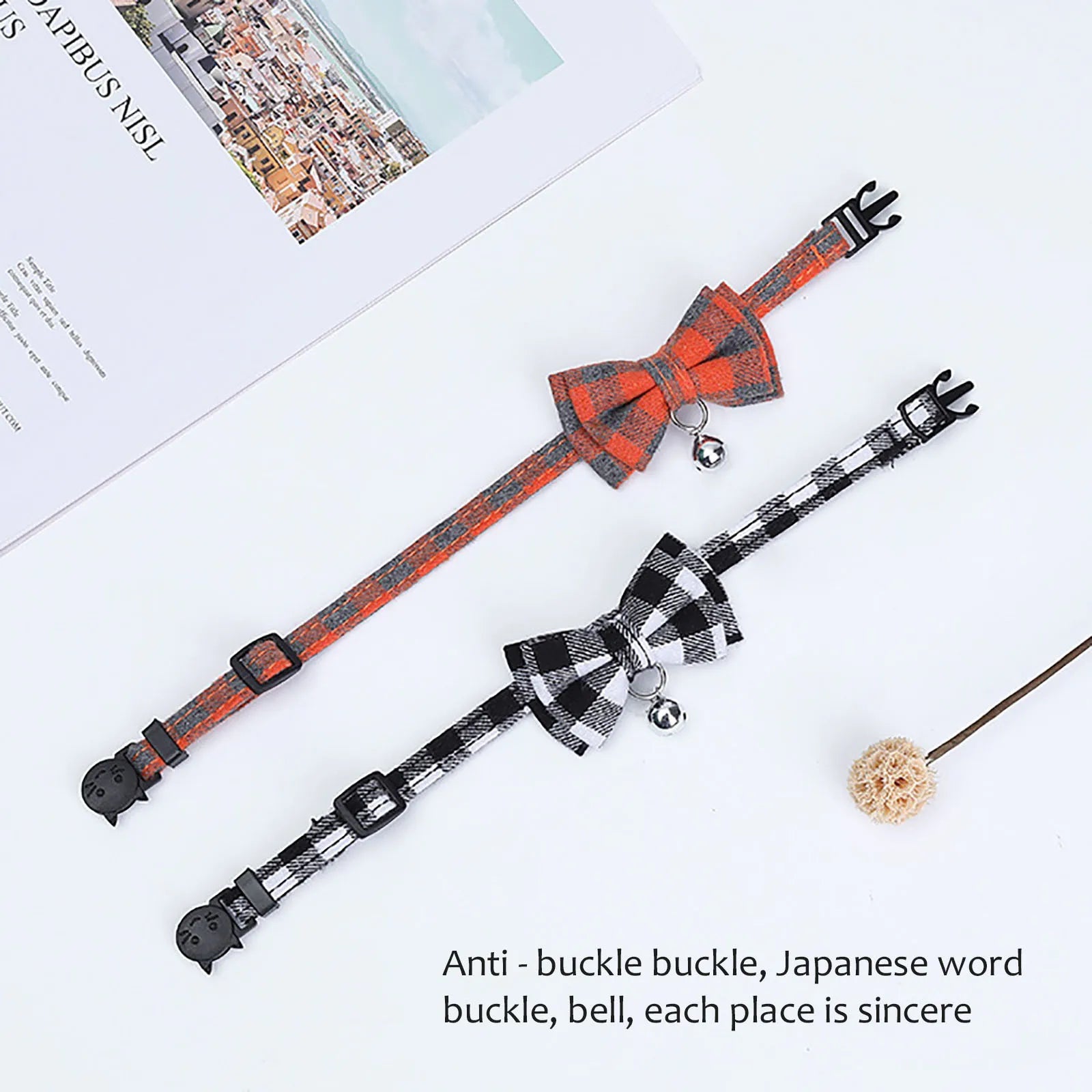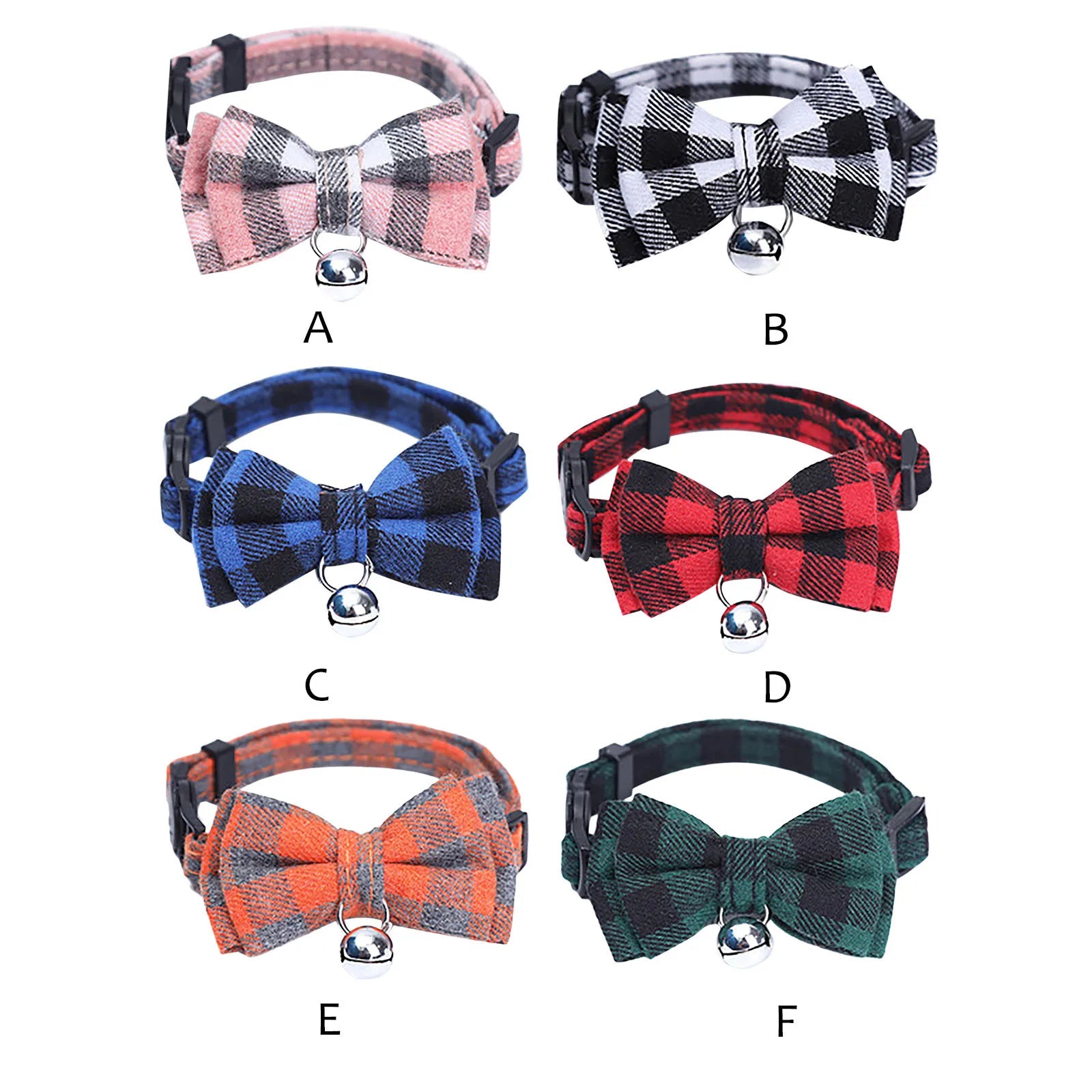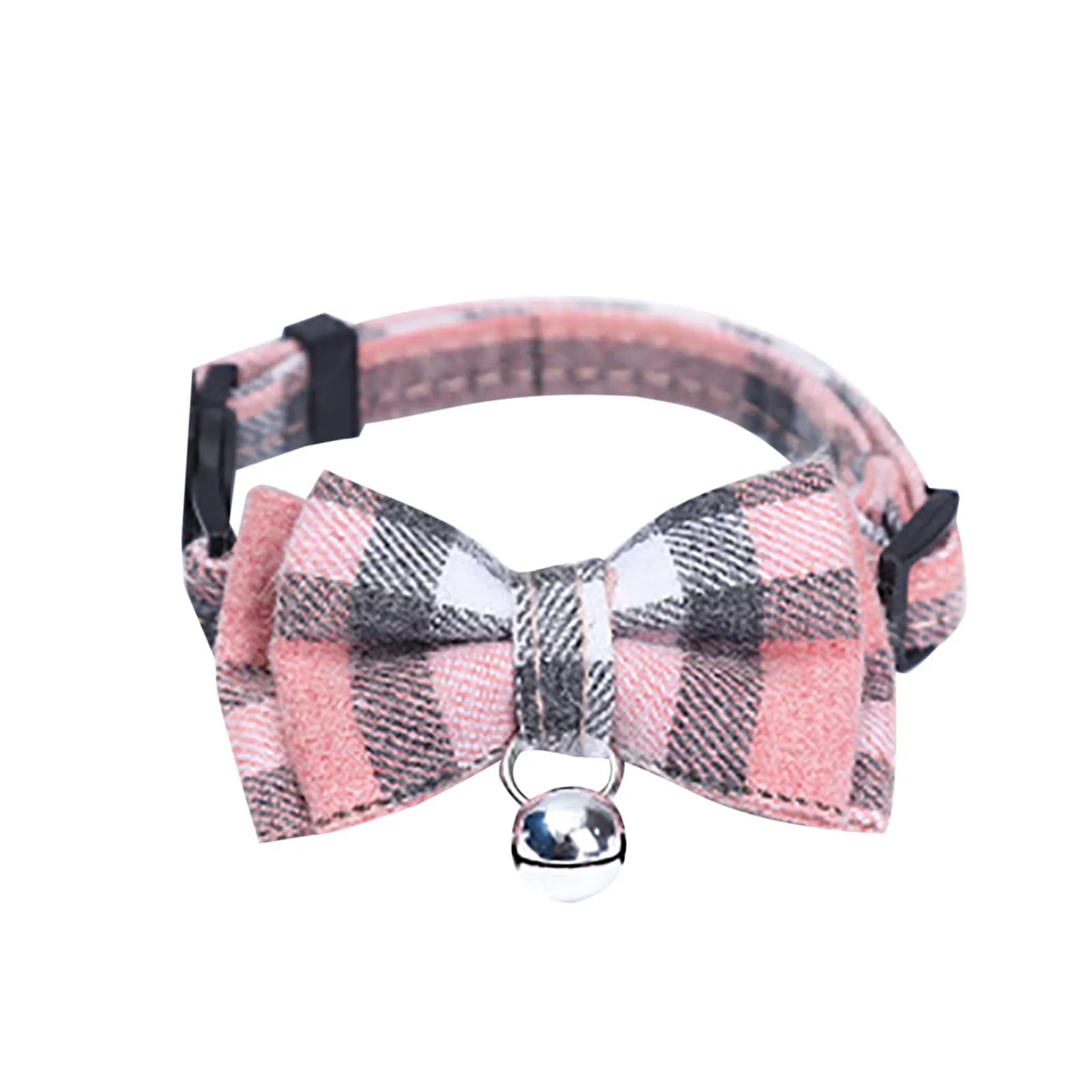 Pet Collar British Plaid Bowknot Cat Collar Buckle Type Cat Collar with Bell