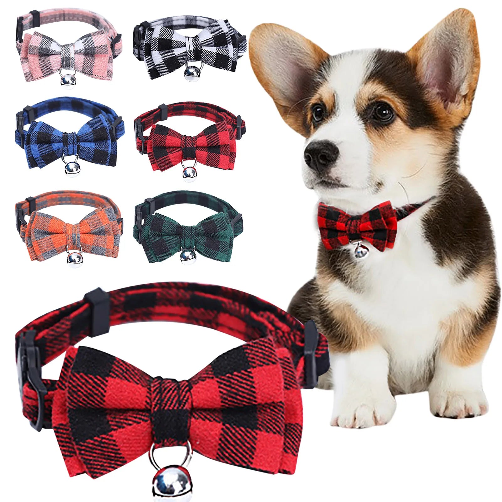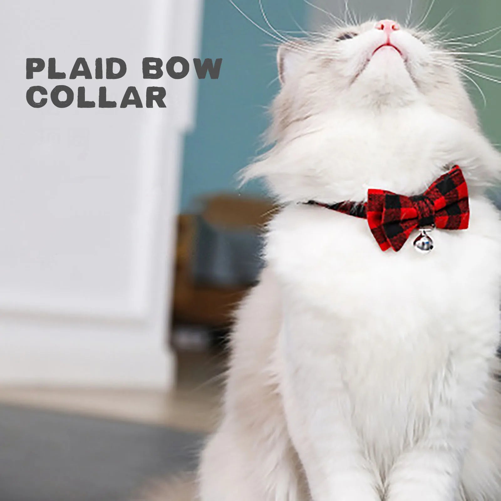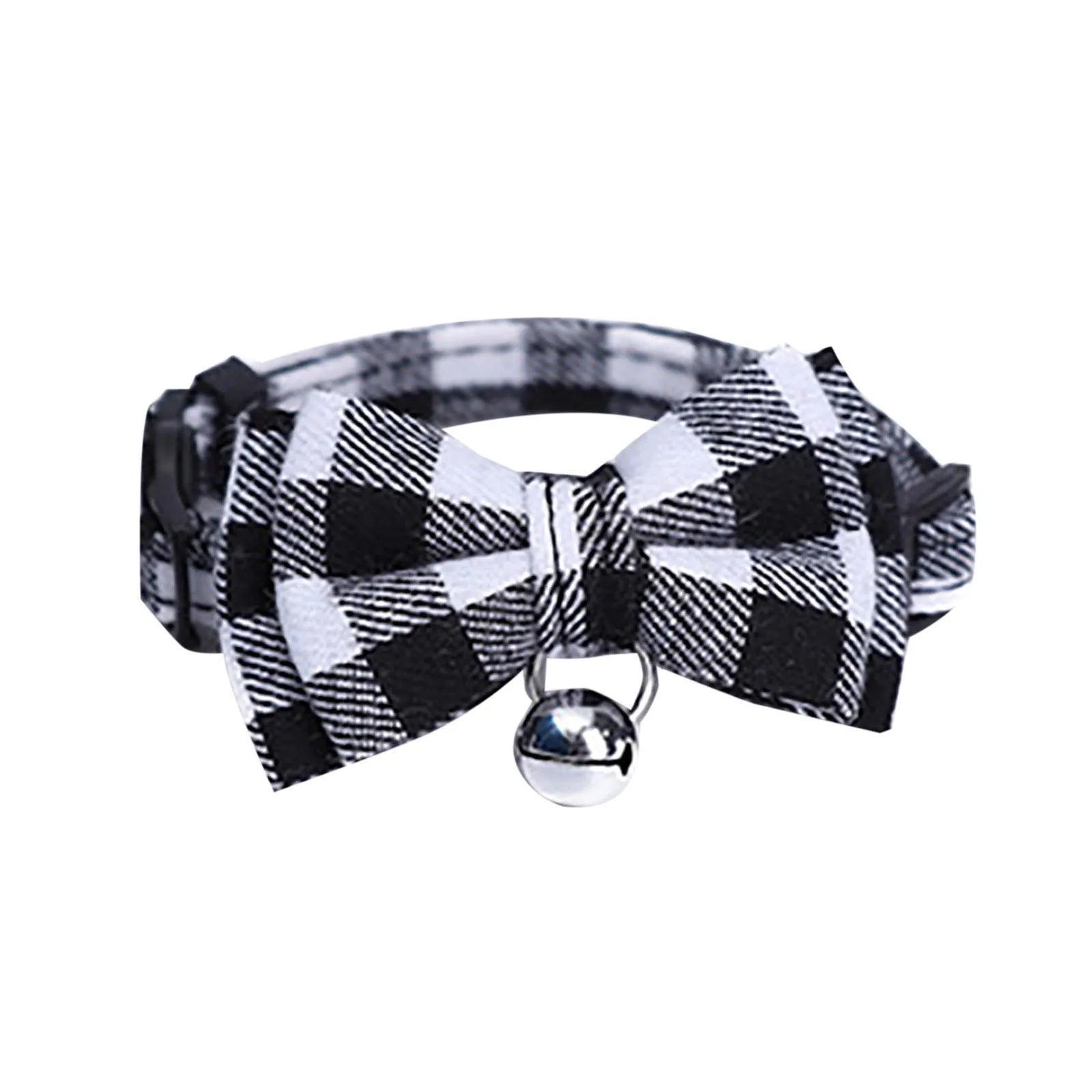 Pet Collar British Plaid Bowknot Cat Collar Buckle Type Cat Collar with Bell