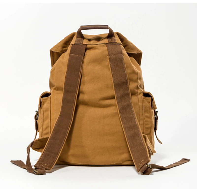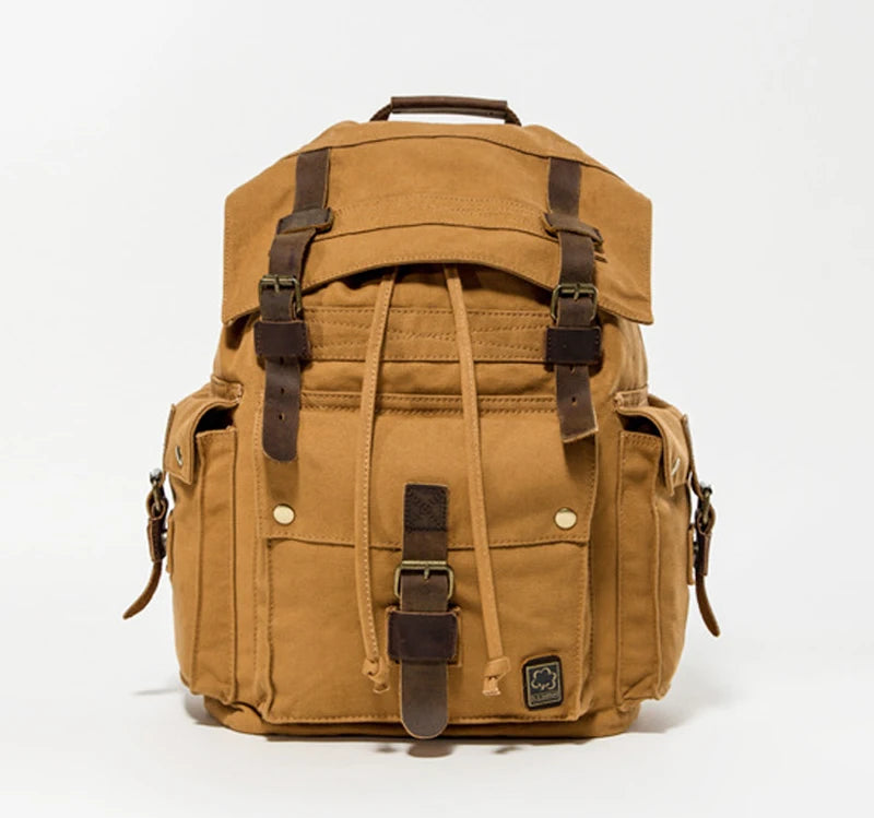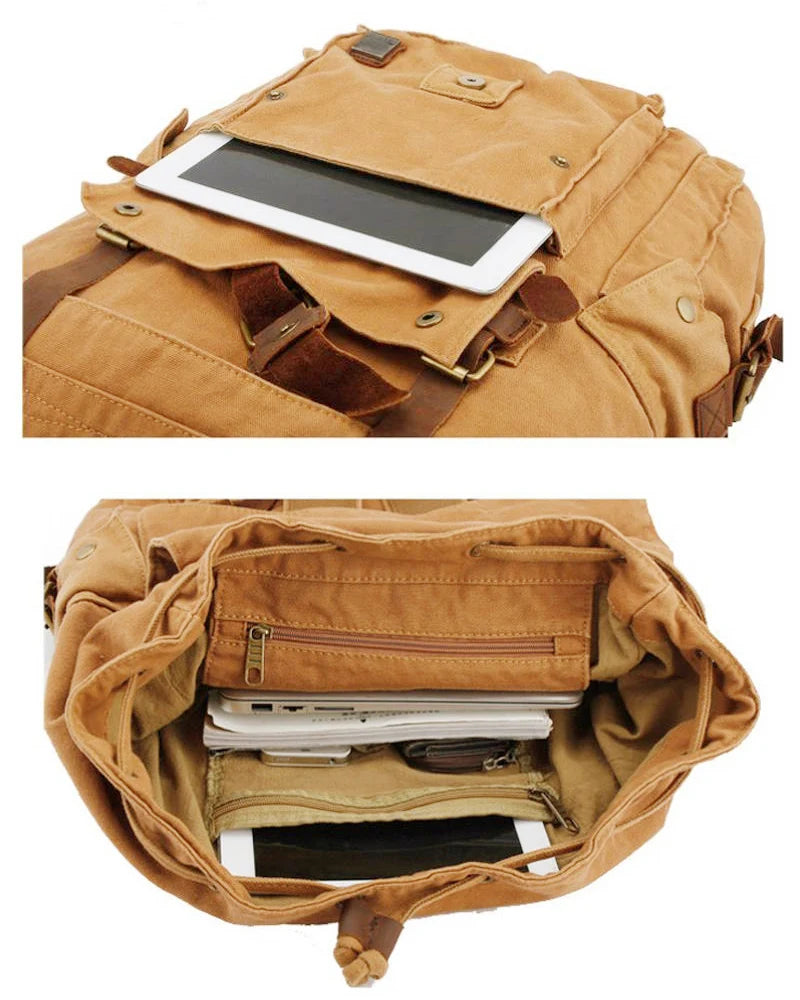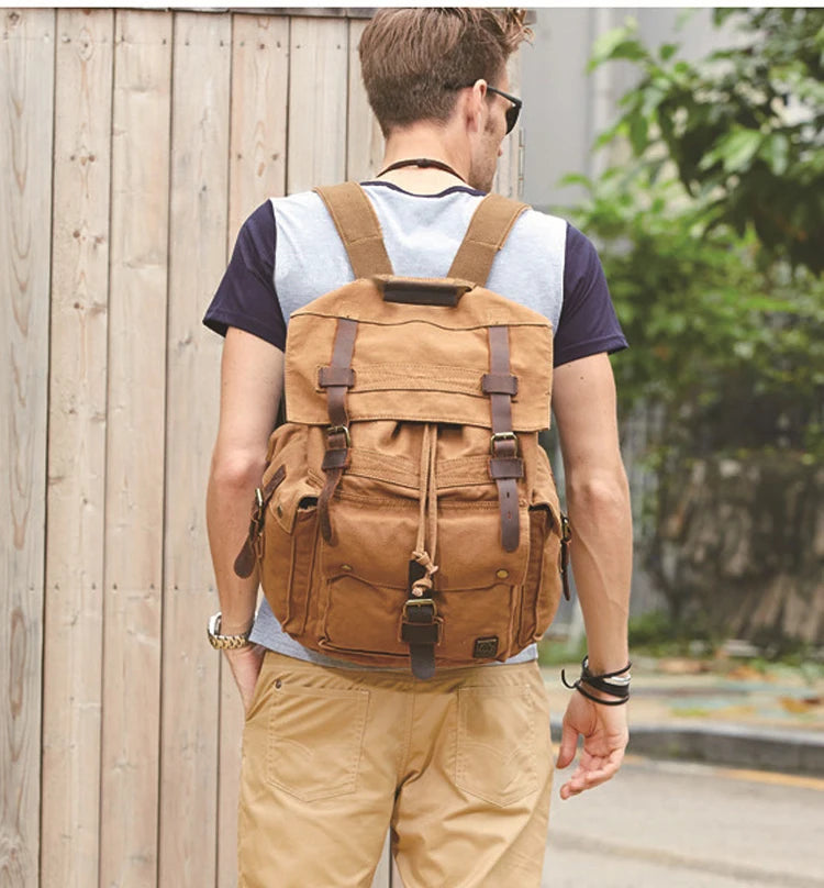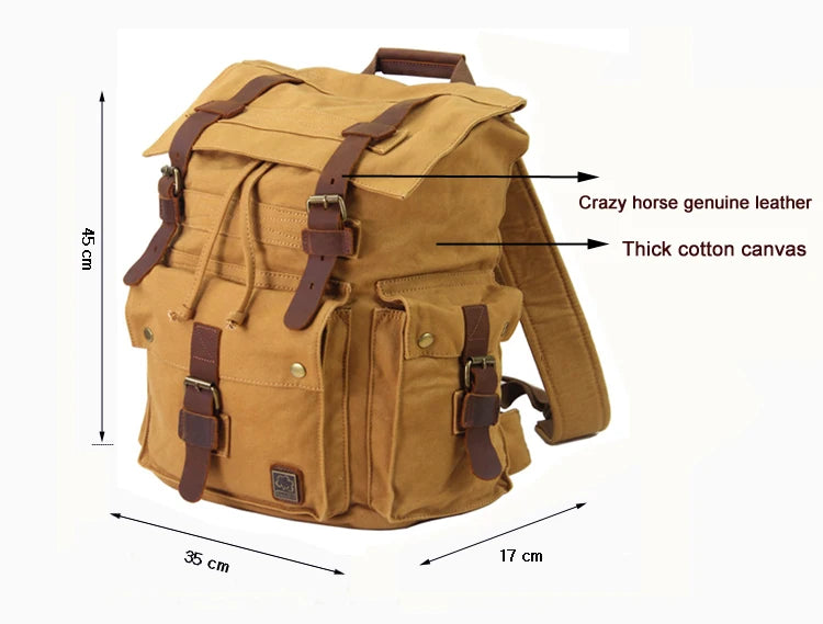 Vintage Men Military Canvas Leather Travel Backpack Rucksack Camping School Bag